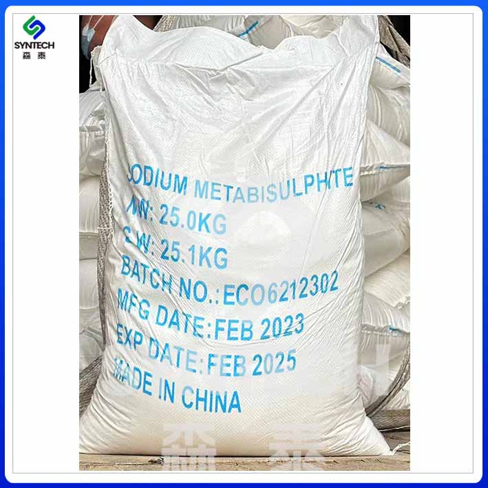 包装:内衬用食品级聚乙烯塑料袋,外包装用的塑料编织袋包装,每袋净重25kg或50kg。 包装外印有“食品添加剂焦亚硫酸钠”字样及“防潮防热'’标志。